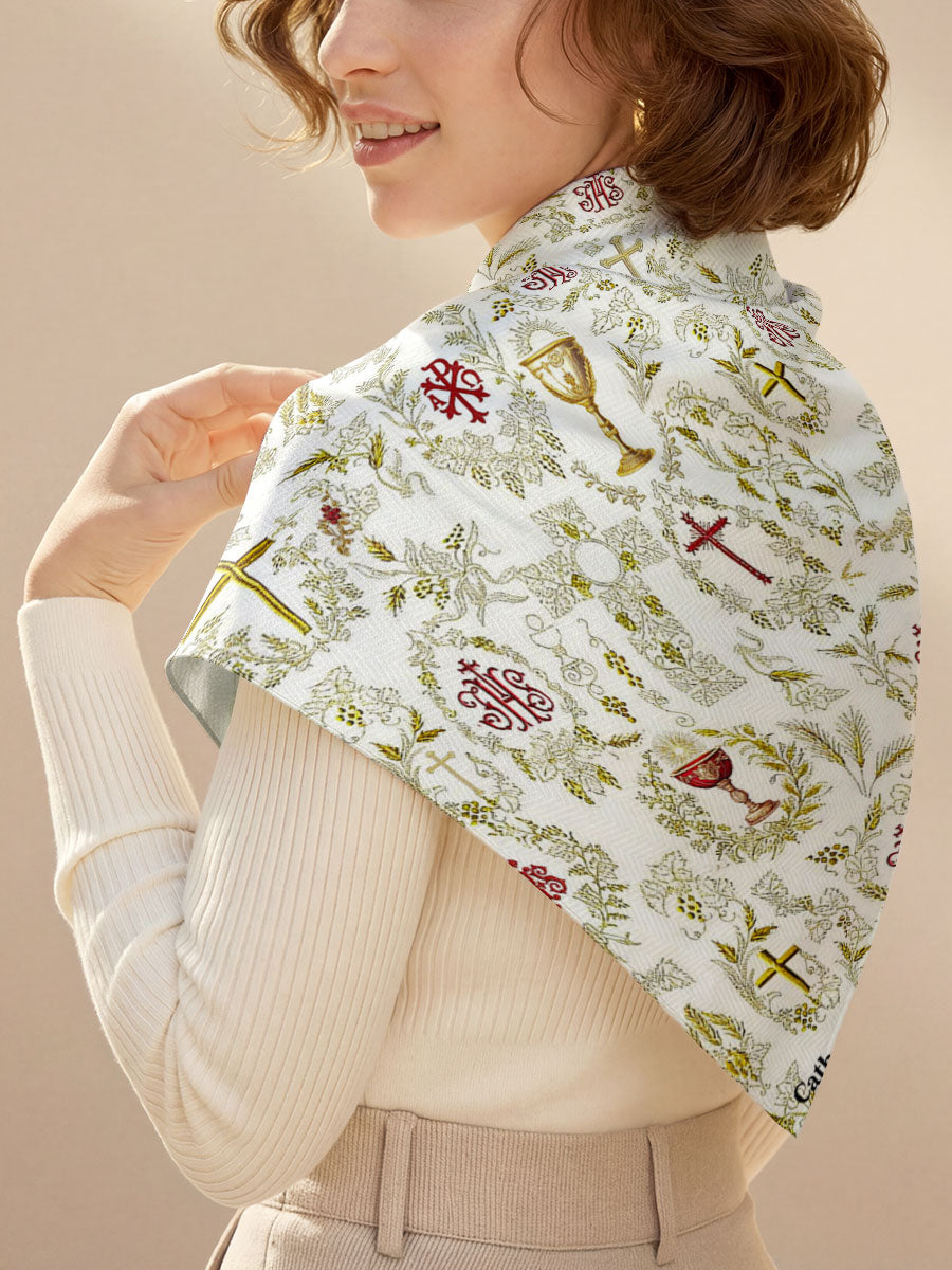 Crafted from Woodgrain Silk, this 70x70cm square scarf glows with a soft, luminous texture — elegant yet quietly powerful. Lightweight and smooth, it drapes effortlessly for prayer, Sunday Mass, or as a meaningful daily accessory.