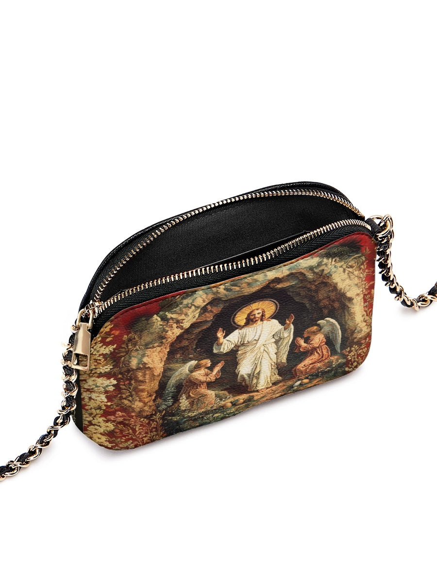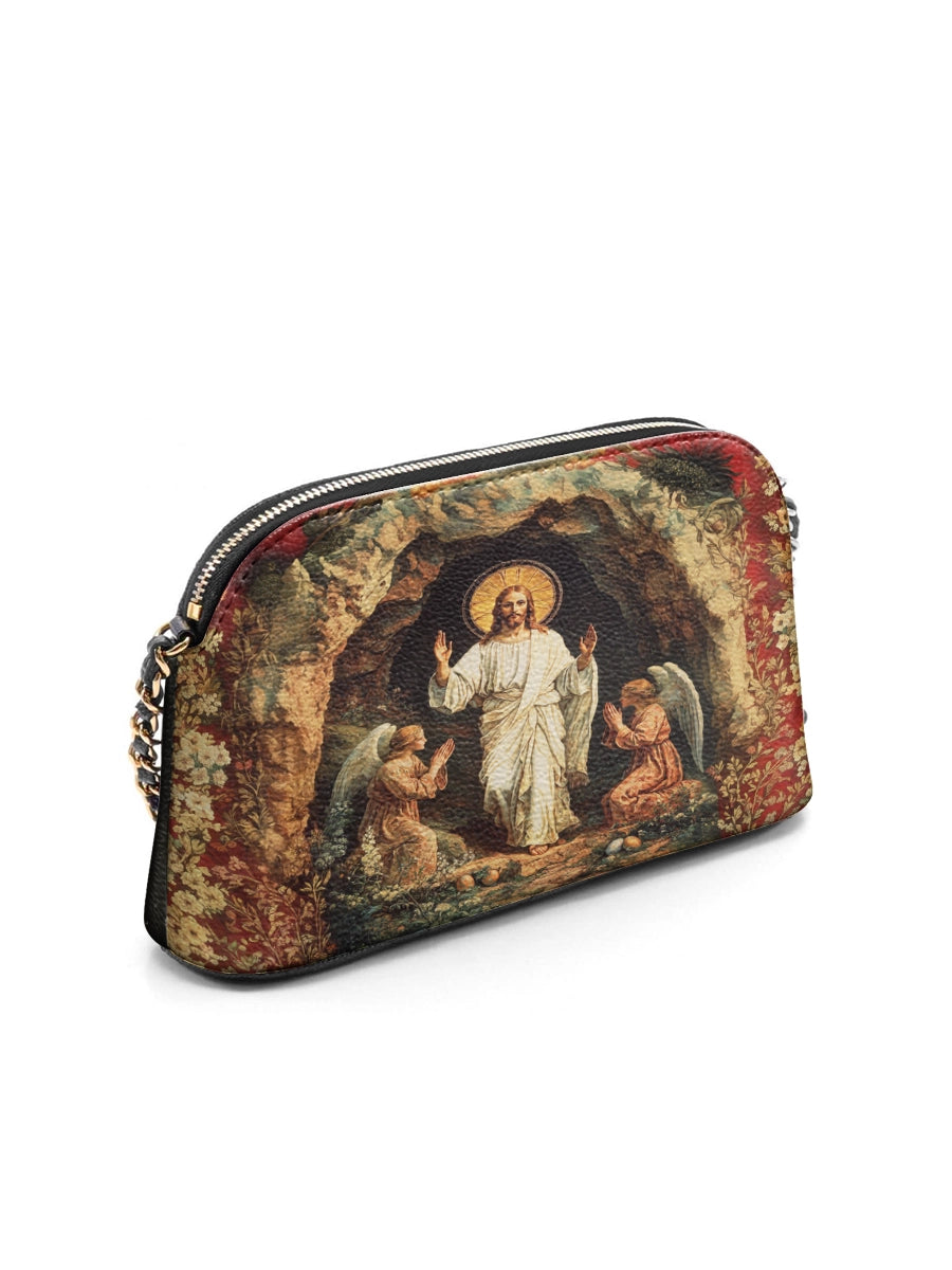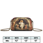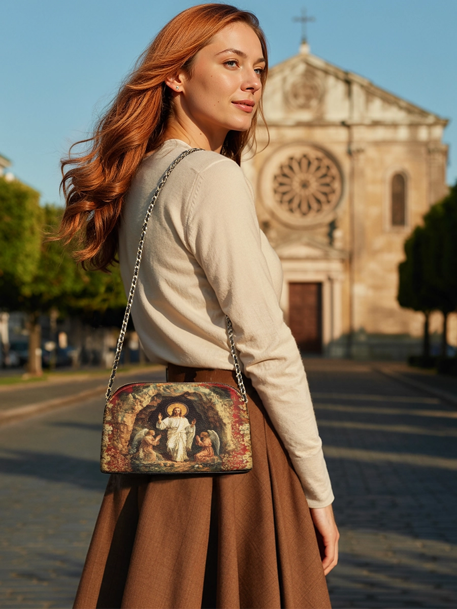 Designed with grace and intention, the Catholight Crossbody Bag is a quiet expression of faith and elegance. Its compact form, gold-accented chain strap, and symbolic artwork make it a meaningful companion for both daily life and sacred moments.
