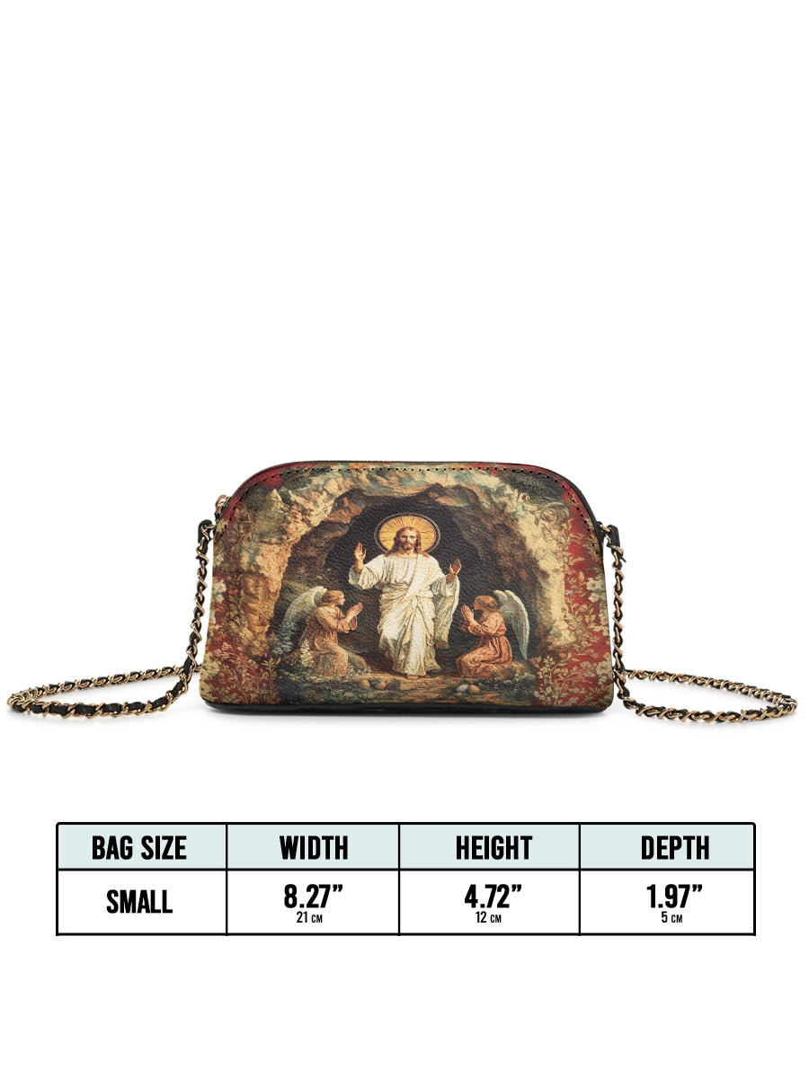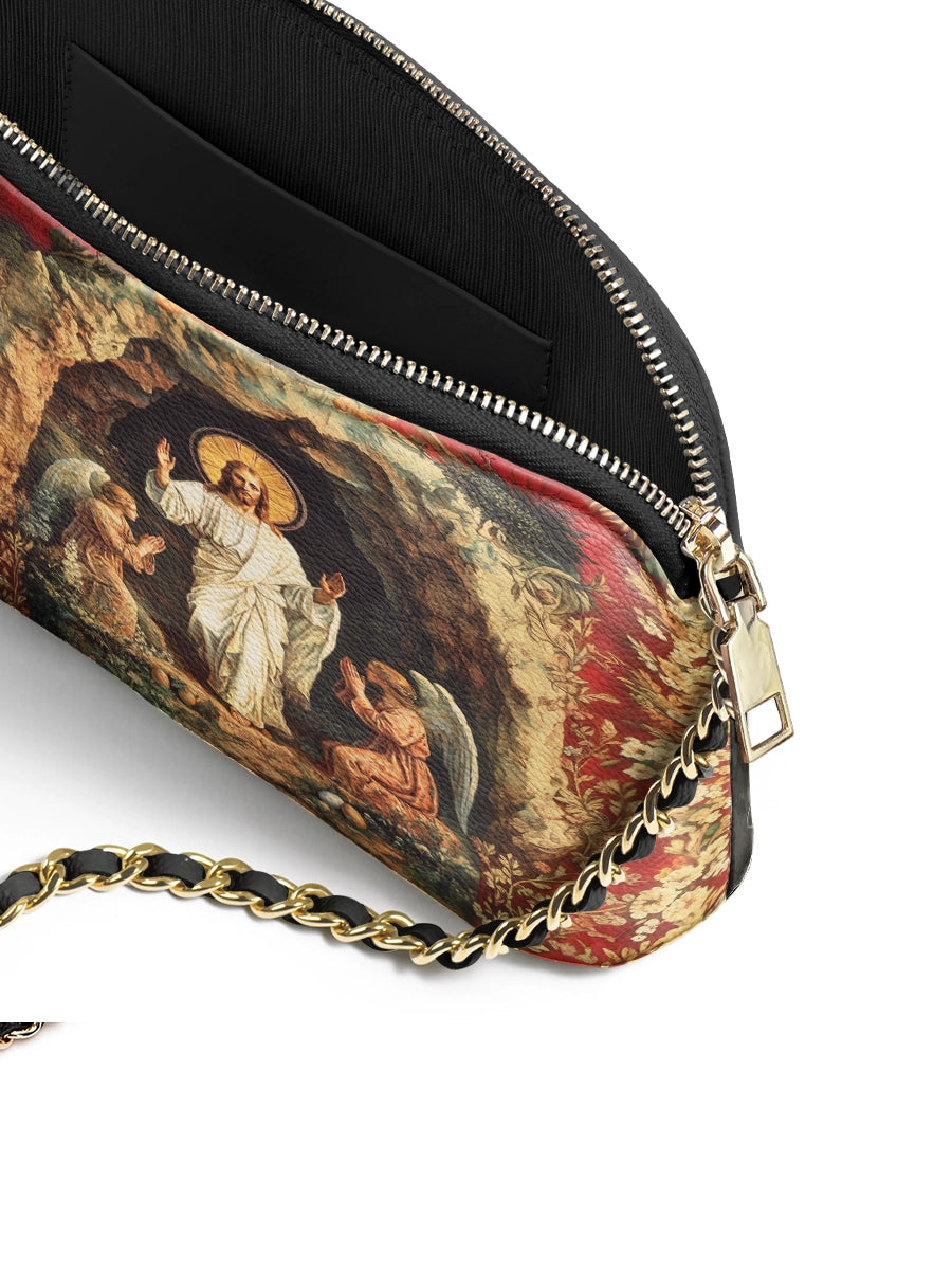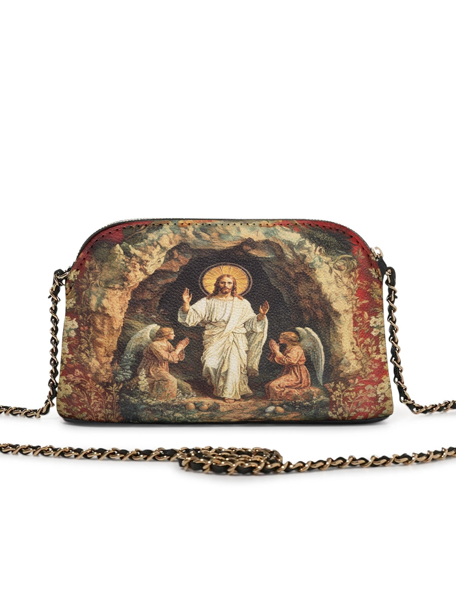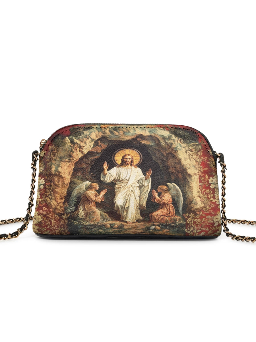 Designed with grace and intention, the Catholight Crossbody Bag is a quiet expression of faith and elegance. Its compact form, gold-accented chain strap, and symbolic artwork make it a meaningful companion for both daily life and sacred moments.