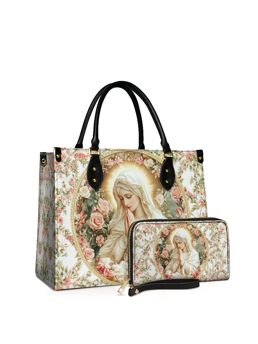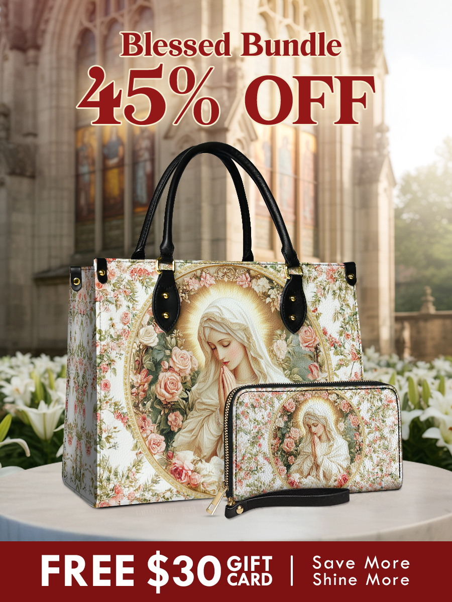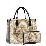 The structured handbag offers timeless elegance and ample space for your essentials, while the matching wallet brings both organization and beauty to your daily routine. Together, this pair is more than an accessory — it is a graceful companion for women who carry faith close to their hearts.
