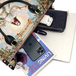 MEDIUM (13.8”× 10.6”× 5.5”): Graceful and versatile. Holds your Missal, devotional journal, water bottle, hand cream, wallet, phone, and even a folded shawl for chilly chapels. Perfect for parish meetings, adoration, or daily errands with purpose.