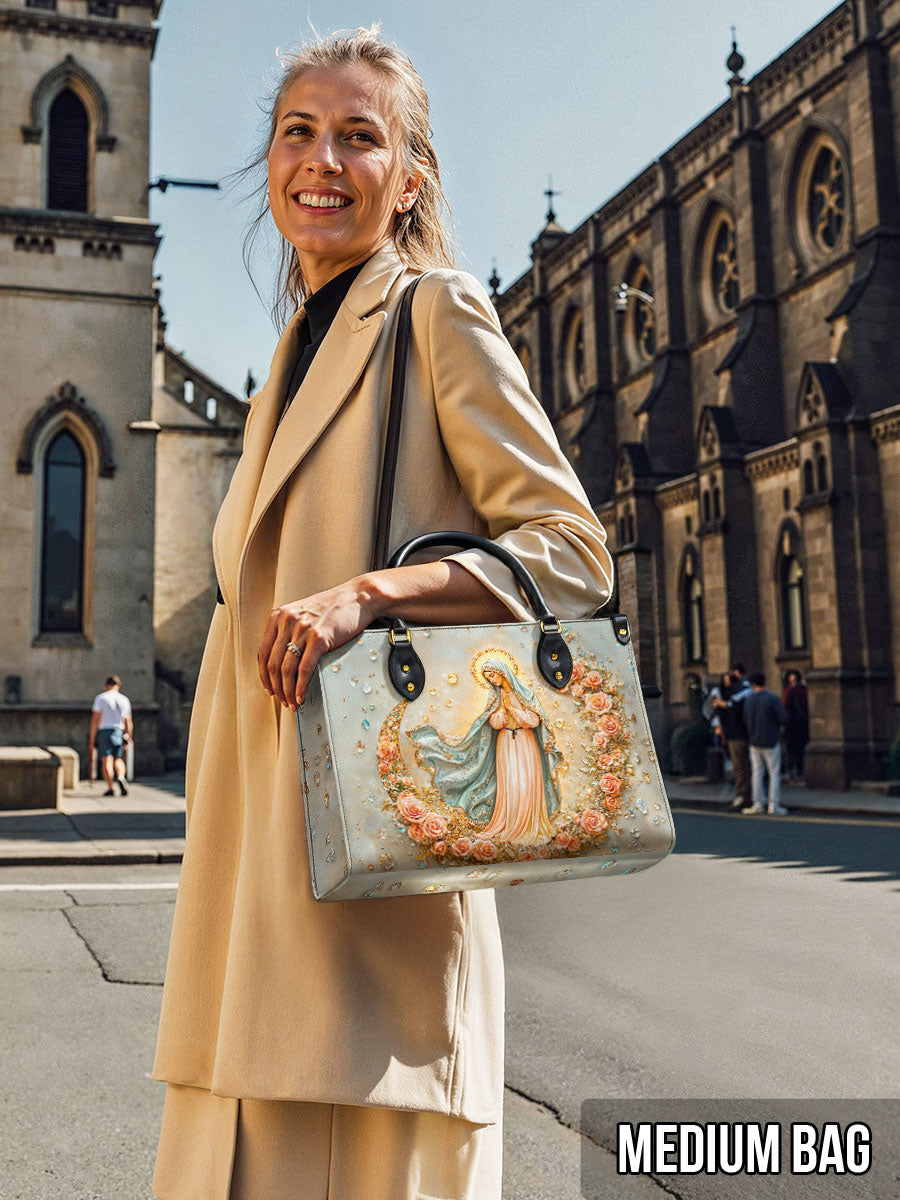 Perfetta per i servizi religiosi, le occasioni speciali o l'uso quotidiano, questa borsa in pelle combina eleganza con significato spirituale. È un accessorio ispiratore per le donne di fede e un regalo pensato per coloro che apprezzano la loro devozione alla Nostra Signora.